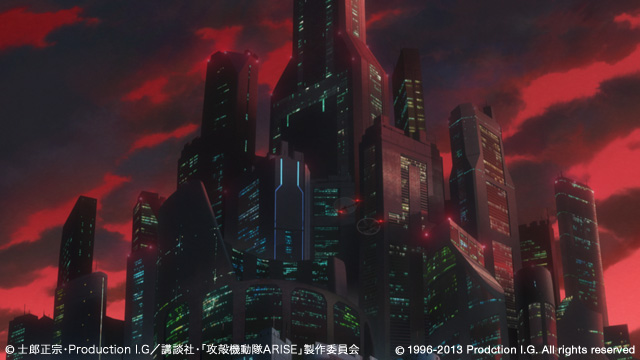 西尾作画監督によって起こされた冒頭シーンのビル群。素子のルーツに繋がる重要なシーンに栄える見事なデザインです。 西尾最後まで一人で全部出来なかったのは悔いですけど、それをやっている場合でもなかったので(笑)。レイアウトはやりましたけど、原画は他の人に任せました。予告先行(※2)で弾みがついた感じですね。作品作りではいつものことなんですが、予告先行は無茶振りでしたけどね。