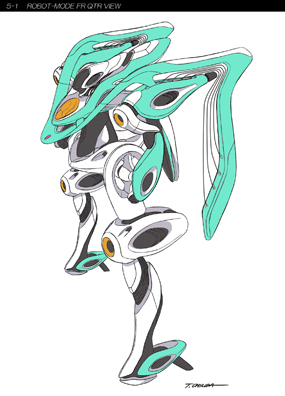 主役機デザインは大須田貴士氏(日産自動車グローバルデザイン本部)による案に決定し、アニメ畑のメカニックデザイナーにクリーンナップを頼むことなく、すべての作画用設定画稿を大須田氏に作成してもらうことが決まった'09年6月末。