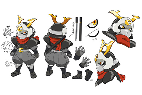 ナノマシン忍者 月影(つきかげ):カタナワールド.全身がナノマシンで出来ているため大きさや姿形を自由に変えることができ,分離しても各々に行動が可能.言葉は「忍(ニン)」しか言わないが,実は人間の言葉も使える.話さないのは精神修養のためである.普段は手にした巻物に書き込まれた文でコミュニケーションする.真面目な性格で,与えられた任務を忠実に遂行する有能な「忍び」であり,バディである斬夜との絆も強い.兄弟である白夜と合体することで「鬼神 剛刃丸」となる.