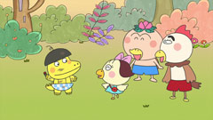 「すぎるくん,がんばりすぎる」:村のみんなから頼りにされているお父さんを尊敬するすぎる.自分も困っている人を助けようと頑張るが,うまくいかず空回り.そんなときピーヨンが指輪を穴に落としてしまい…….