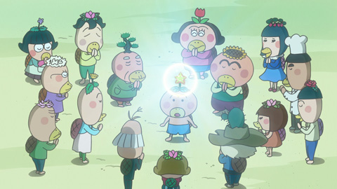 はなかっぱの頭に珍しい花の芽が出た.水灯花という花で水中でしか花が咲かないけど,咲くときに光りを放ち,その間に願いごとをすれば叶うと言われているんだって.そんなわけで,はなかっぱ一家は水灯花が咲くまで水中での生活することにするが……,花は咲くのかな?